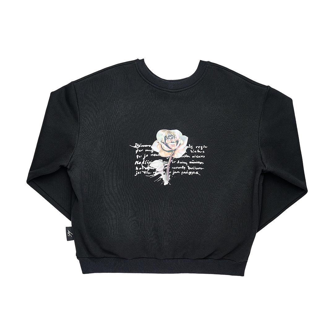 Limited Edition Jessica Shy „Pasaka“ arenų turo juodos spalvos džemperis be kapišono su iliustracija ant nugaros.