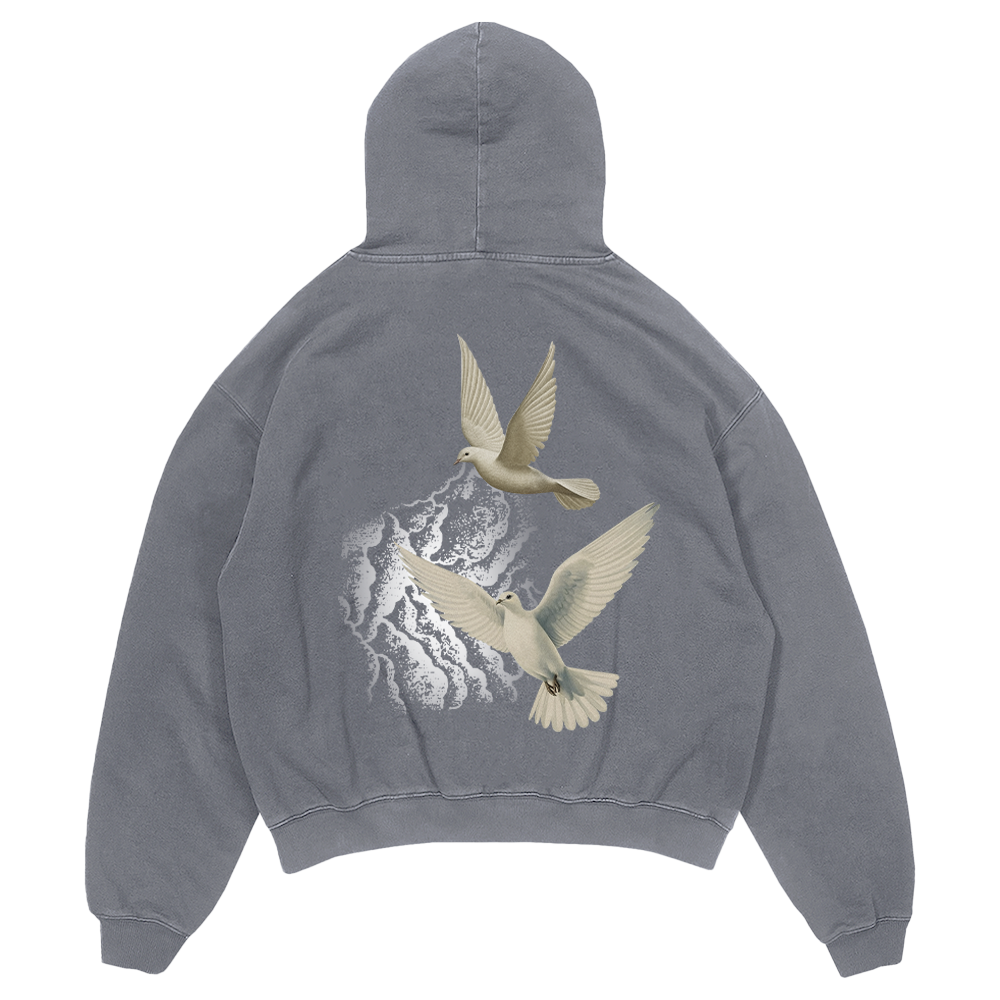 Jessica Shy „Sutemos“ šviesiai pilkos spalvos džemperis su kapišonu (Balandžiai)